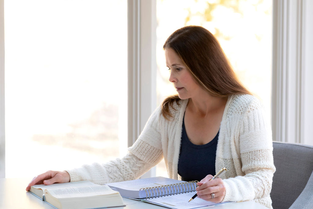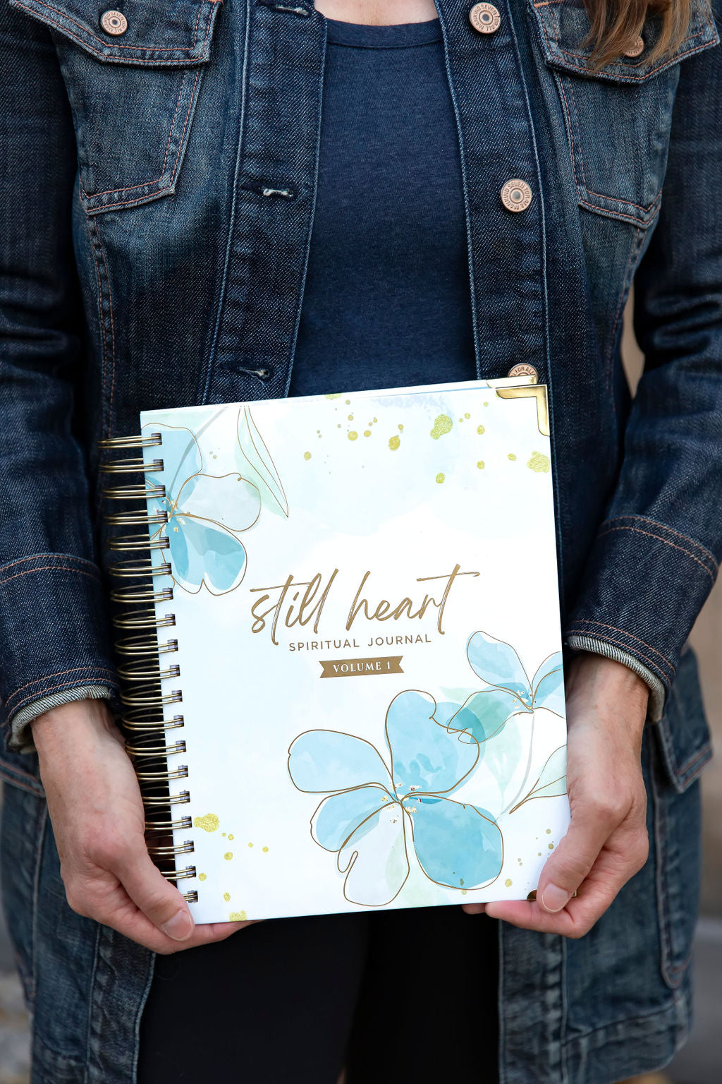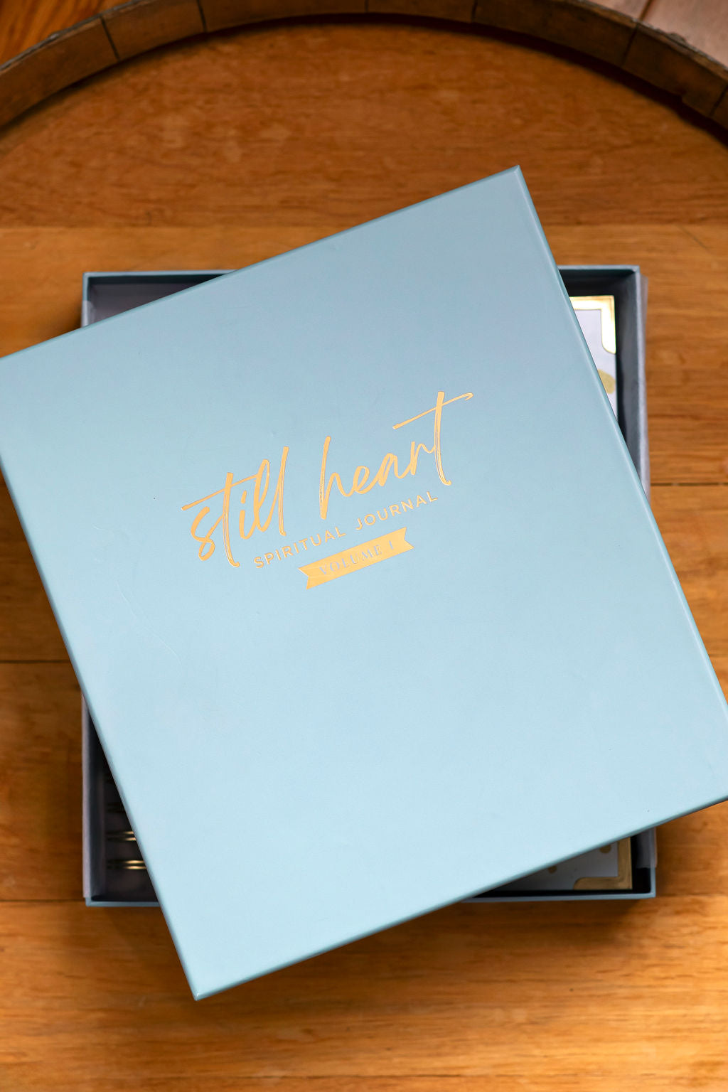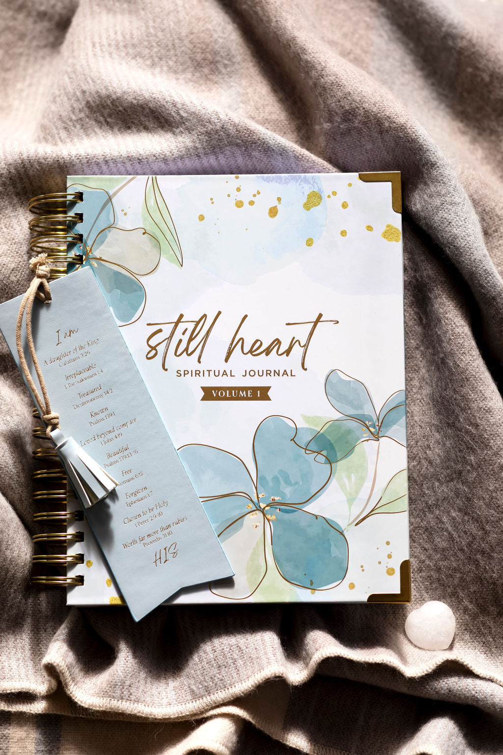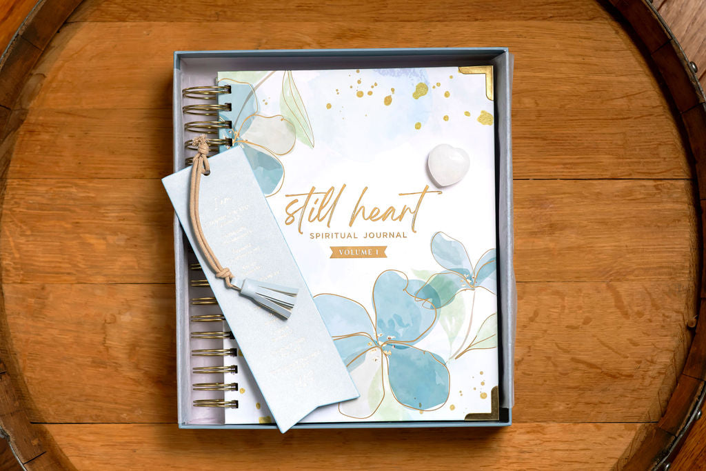 The Still Heart Spiritual Journal is sold as an exquisitely designed gift set including Volume One, a banded page holder, inside pockets on both the front and back covers, an elegant vegan bookmark, and a beautifully crafted stone heart reminding you of the love God has for each person. You no longer need several smaller journals scattered in your sacred quiet place, but now have one beautifully designed cohesive place to capture what the Father, Son, and Spirit whisper to you as you read through the Bible.